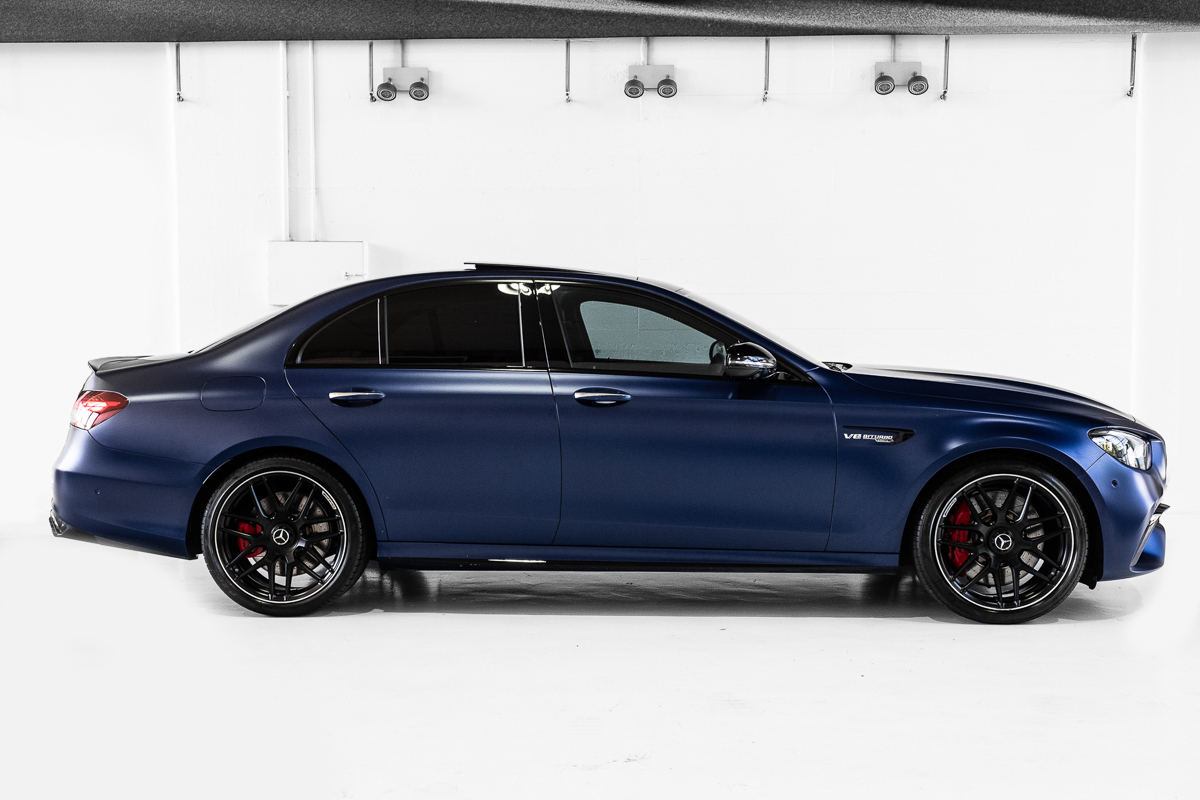 This particular car wears MANUFAKTUR Brilliant Blue Magno, a finish that feels almost sculptural. There’s a richness to it - deep and matte, like ink drying on fine paper - that gives the E63 S a presence far beyond its spec sheet.